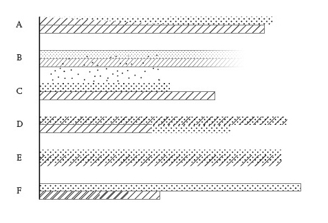 In this chart gendered identity is modified. In nation A, the top bar contains a changing gradient, indicating that “man” is a continuum from male enfant to adult, or in countries E and D, that gender ambiguity is a factor of genetic mutation or adaptation, thus showing that basis on which gendered individuals are identified and counted is complicated by many factors. In country F women only register as individuals after coming of reproductive age, thus showing that quantity is a effect of cultural conditions, not a self-evident fact. The movement of men back and forth across the border of nations B and C makes the “nations” unstable entities. Graphic credit Xárene Eskandar. Figure 2 in (Drucker (2011))