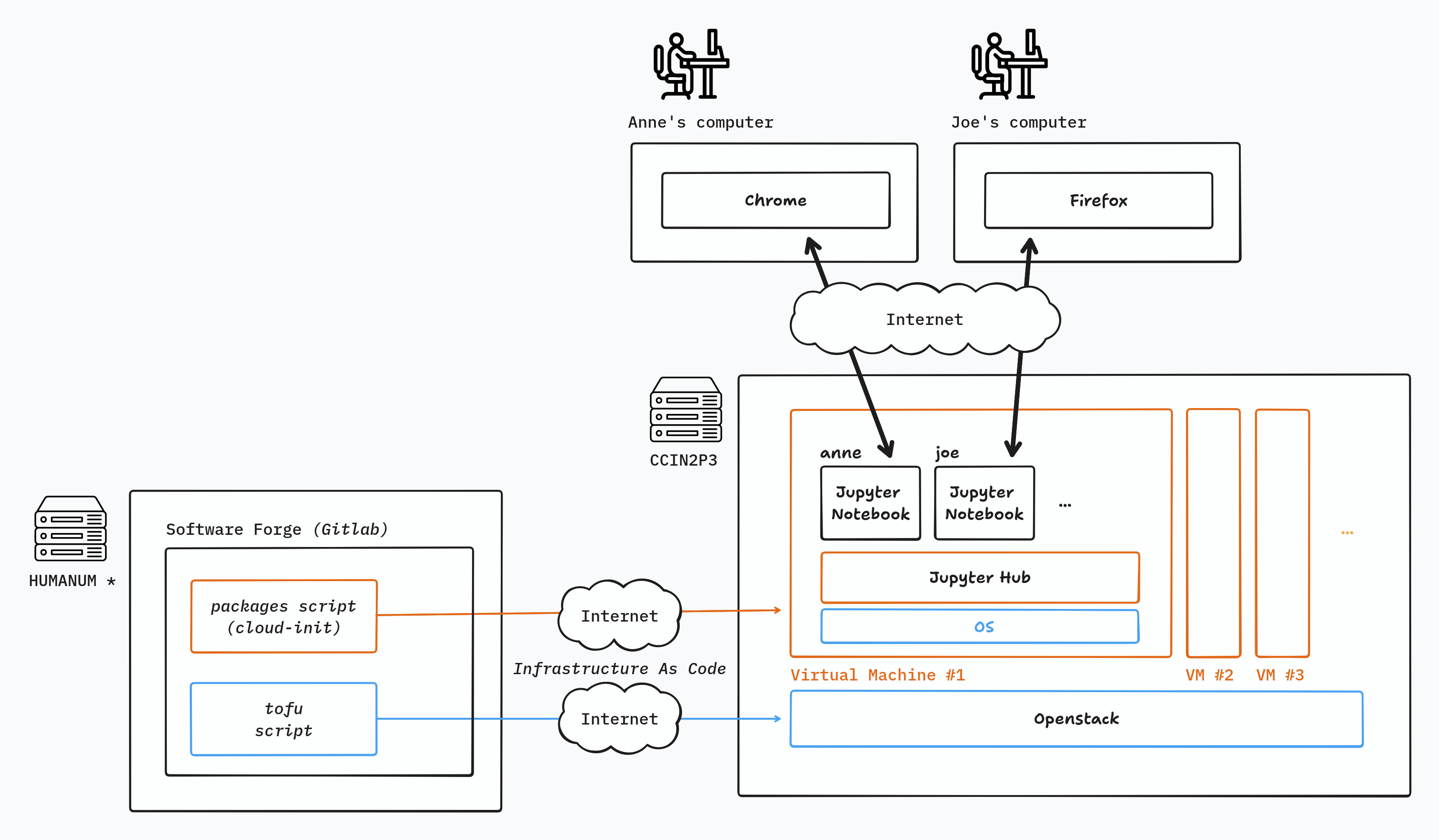 A complex architecture for delivering JupyterNotebook during the workshop